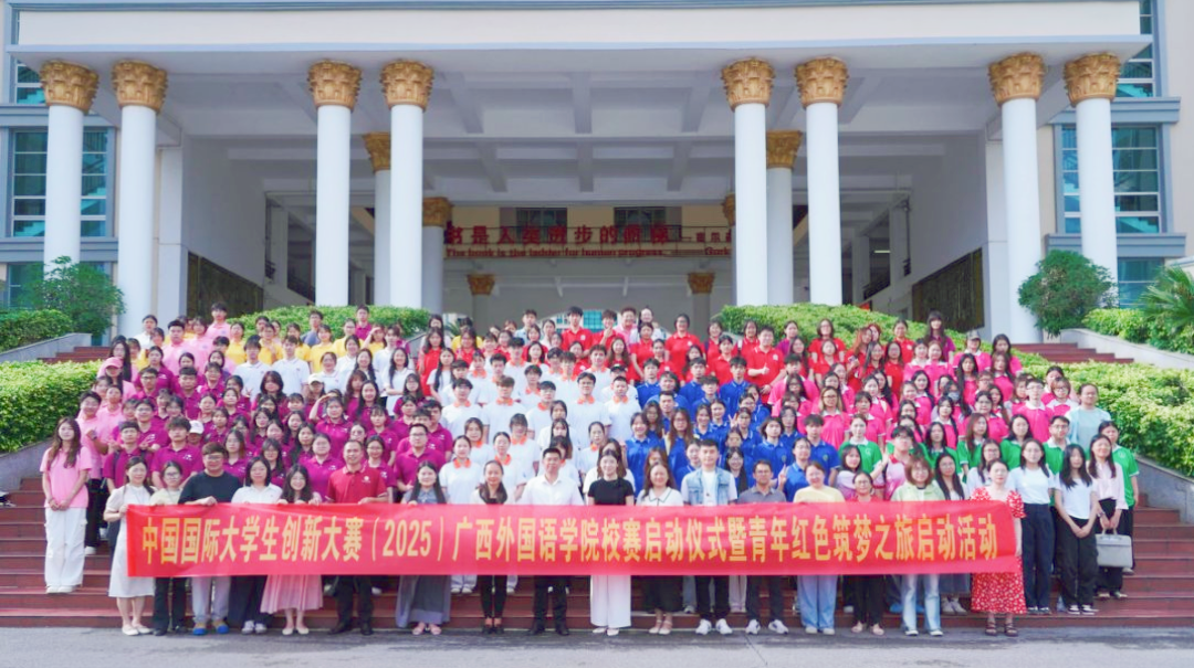中国国际大学生创新大赛(2025)广西外国语学院青年红色筑梦之旅启动仪式合影