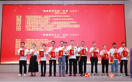 玉林市市委书记玉林市市长为优秀玉商代表颁奖,袁雅琴获奖(左三)