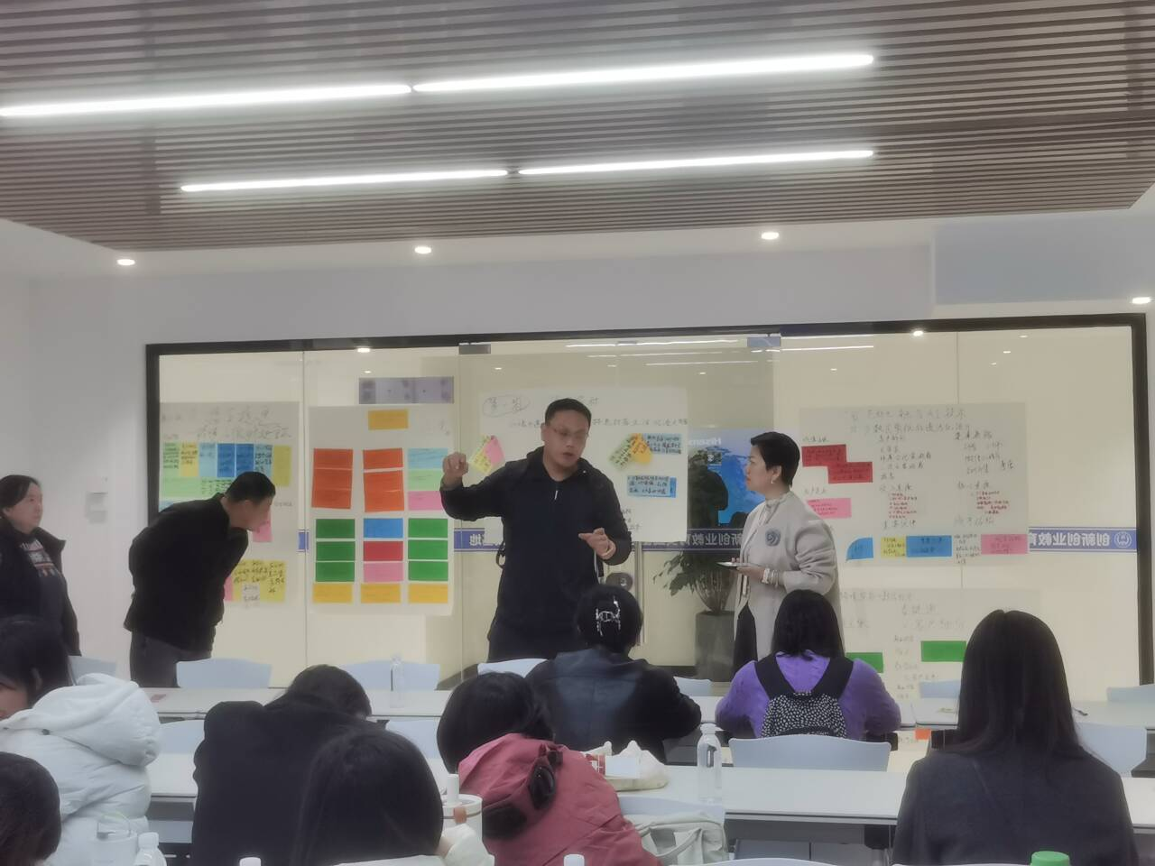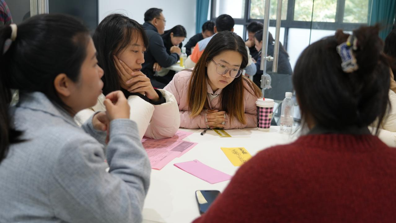 老师们分小组制作商业画布现场