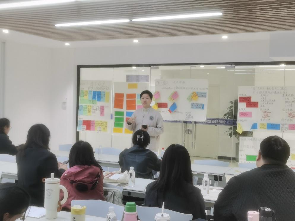 学校双创内训导师会计学院许卉老师以“为什么教?教什么?怎么教?”三个问题为牵引,引导老师们从讲授者到引导者的角色转变。以响应国家战略,创业引领就业为立足点,课赛联动的方式,组织各小组老师们围绕“国家战略赛道”设计教学画布,通过小组讨论,制作画布,汇报成果与点评等体验式培训,让老师们逐步理清课程主题与对象、教学目标与内容、教学方法与考核、教学亮点与可落地性等问题,体会了一体化教学设计和项目式教学的重要性。教师们通过本次培训,对于围绕学生创新意识启发,创业实践能力培养,进行课程整体设计、教案撰写和教学资源准备有了比较深刻的认识与体验,培训受到老师们的喜爱和一致认可。