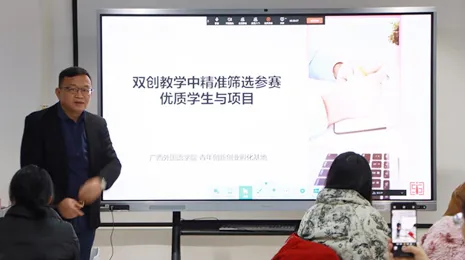 2025年,学校始终坚持以学生创新创业能力培养为核心目标,构建并完善了全员覆盖、全程贯通的“3223”创新创业教育工作体系。在教学实践中,广西外国语学院推动双创教育与专业教学深度融合,全年持续开展系列专题培训与项目打磨工作,为学生提供从选题构思到答辩展示的全过程指导与护航。