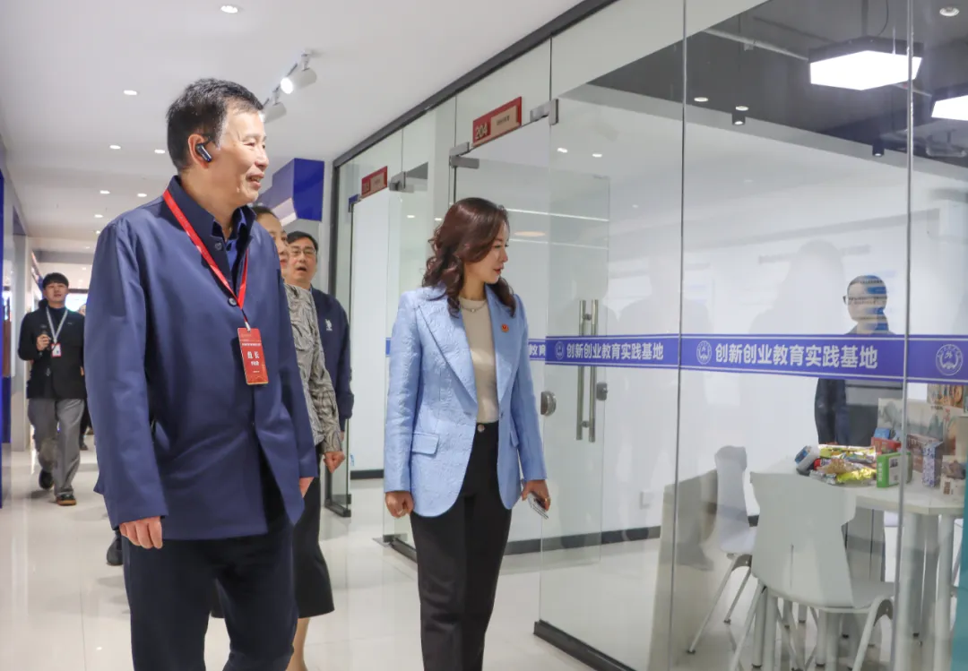 教育部本科教育教学审核评估专家在创新创业教育实践基地成果展厅参观