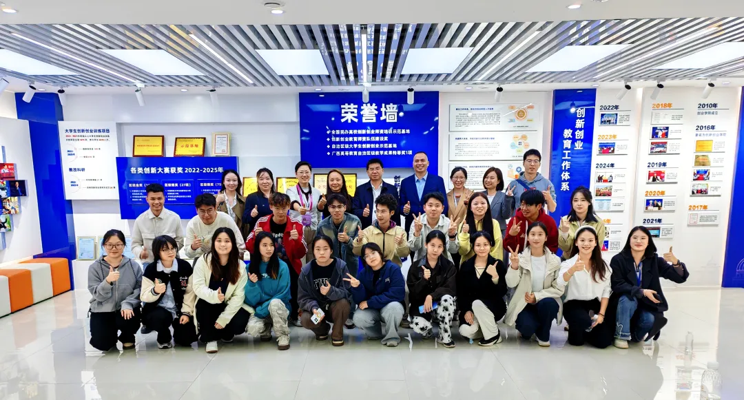 2025年取得的历史性突破,是我校深入推进“思政教育、专业教育、双创教育”三者融合育人的生动注脚。展望未来,学校将持续赓续红色精神血脉,拓展国际化学术视野,进一步完善多层次、贯通式的双创培育体系,为培养具有创新精神、实践能力和国际竞争力的高素质应用型人才注入持久动力,助力更多广西外院学子在广阔的双创舞台上续写辉煌。