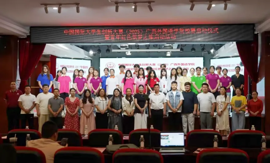 我校举行中国国际大学生创新大赛(2025)广西外国语学院校赛启动仪式暨青年红色筑梦之旅启动活动合影