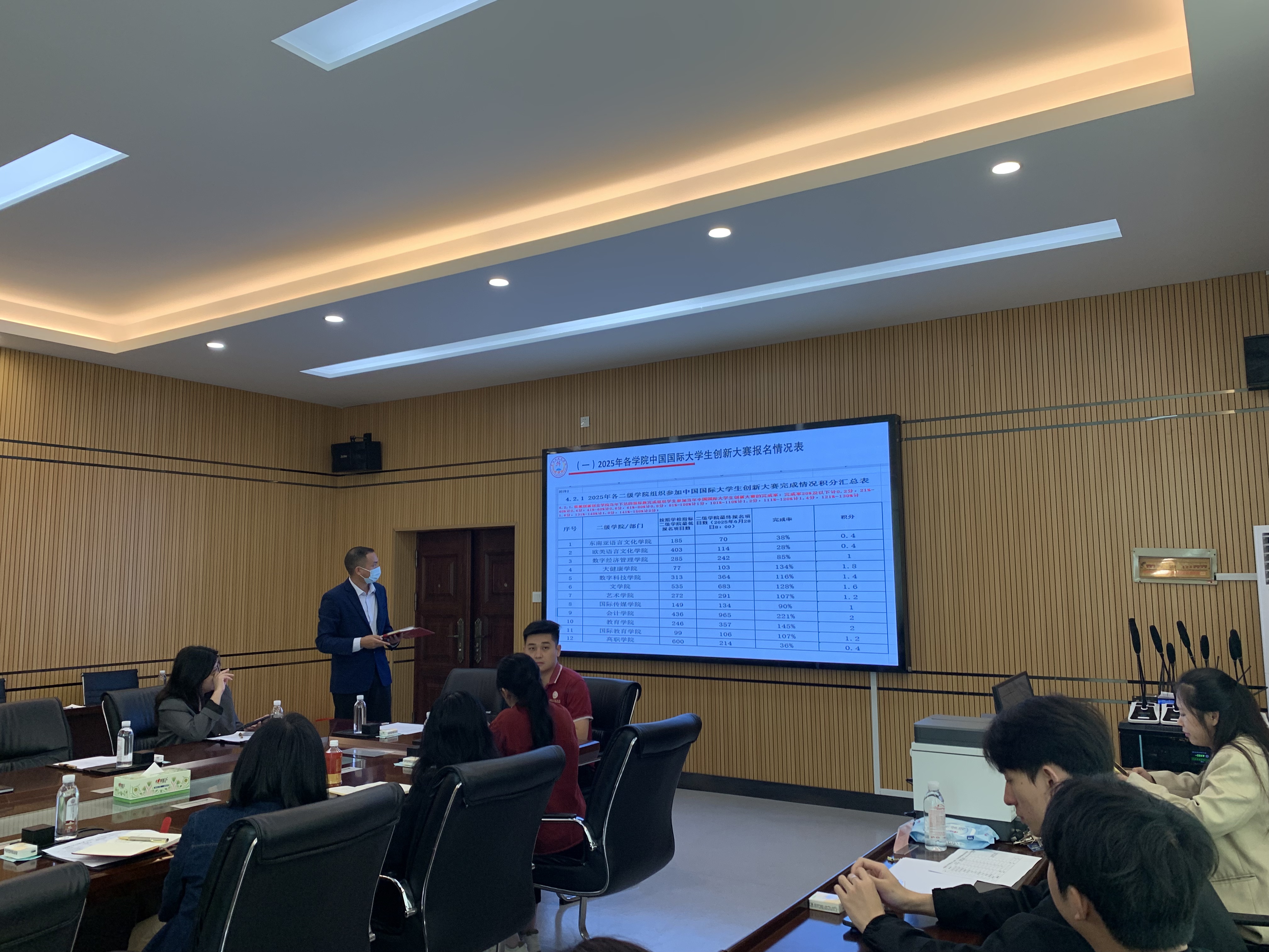 会议第一部分是创新创业学院林宁副院长围绕2026年双创工作核心目标作总体部署,明确全年关键任务,她结合学校2026年工作要点和审核评估整改问题,聚焦顶层设计优化创新、工作体系完善落实、创新大赛争创佳绩、大创项目提质增效、课程建设夯实根基、师资团队强化建设、实践活动系统设计、整合资源优化服务等八大重点工作逐项拆解任务、下达指标、明确责任。